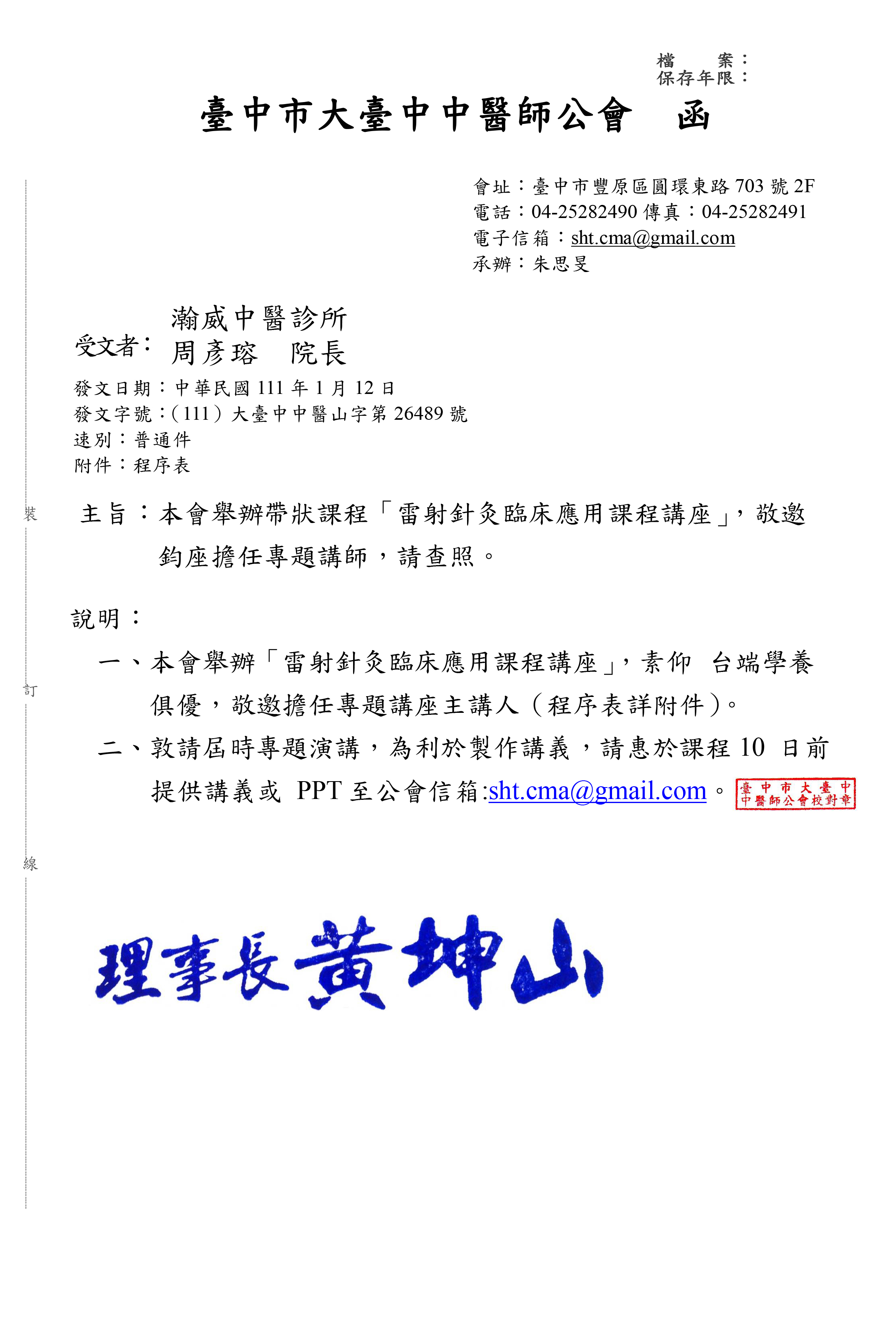 周彥瑢院長應臺中市大台中中醫師公會邀請,講授「雷射針灸臨床應用課程之兒童發展遲緩的應用」