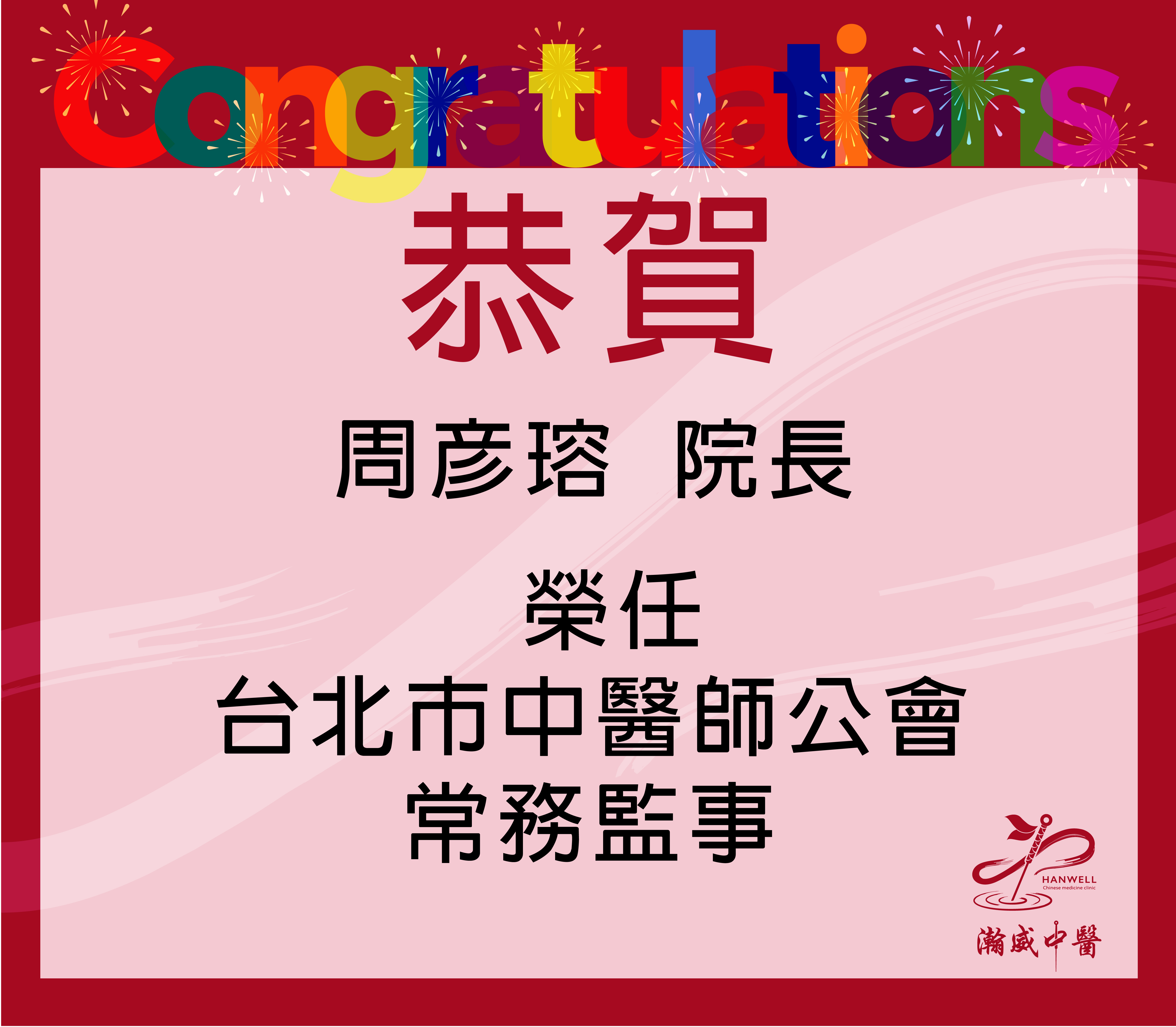 周彥瑢院長榮任台北市中醫師公會常務監事