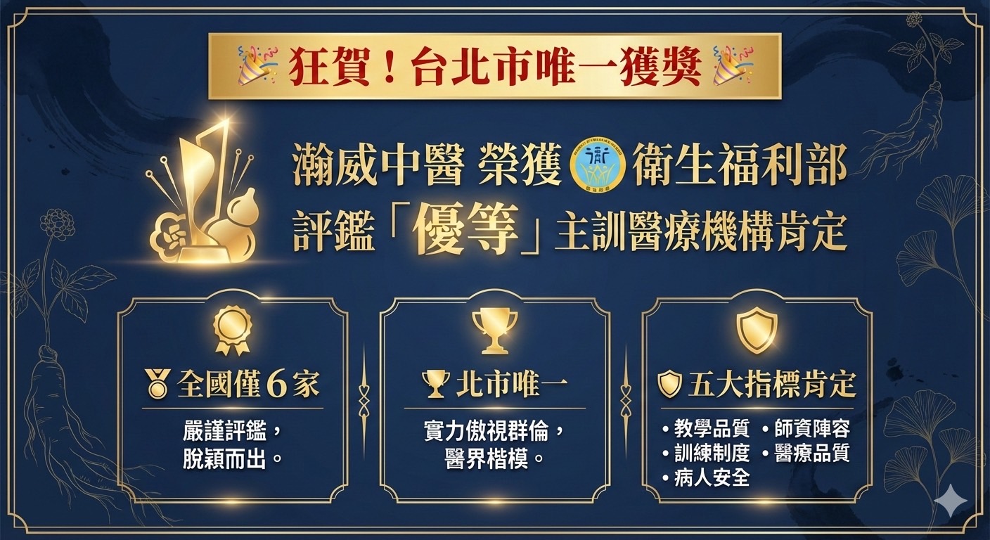 瀚威中醫榮獲衛福部「優等」主訓醫療機構肯定🎉👍