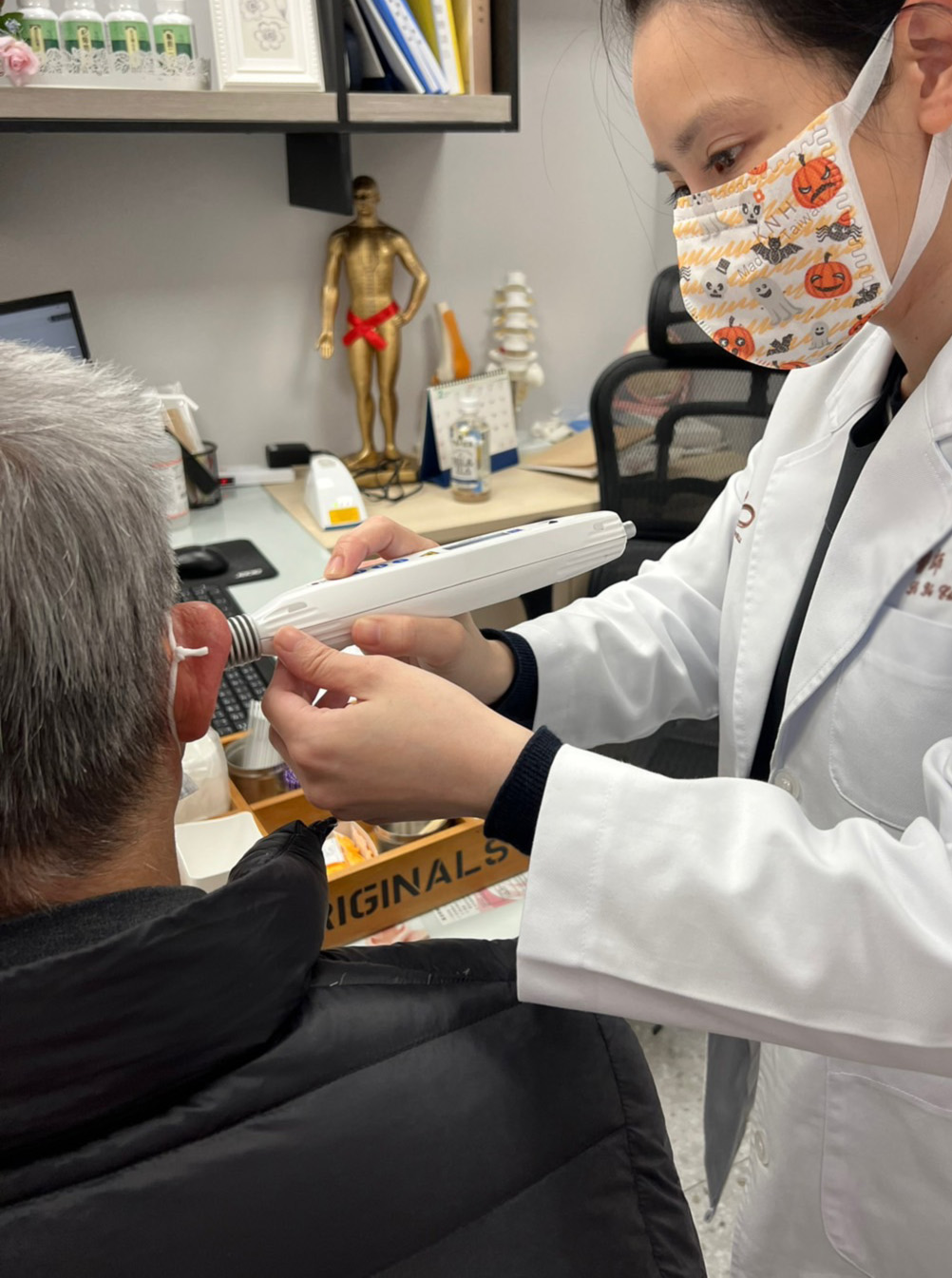在針灸時常取耳周邊穴位如:耳門、聽宮、聽會、翳風、率谷等穴,藉以增加經絡氣機、改善局部血瘀、疏通耳道閉塞。但因頭面部之痛覺較為敏感,造成某些患者對於在耳周穴位進針有所排斥,進而無法持之以恆的接受治療。但欲改善聽力減退問題,除了嘗試傳統針灸以外,也可以採用非侵入性雷射針灸來處理此位患者的耳疾。
